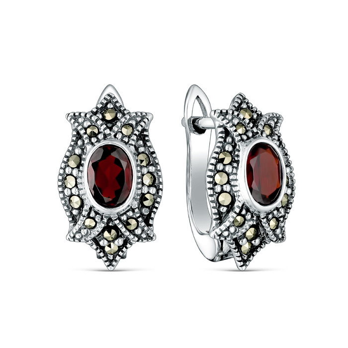 Совместные покупки Пермь Ювелирные украшения и бижутерия Серьги — Серьги из чернёного серебра с натуральным гранатом и марказитами 925 пробы HE030