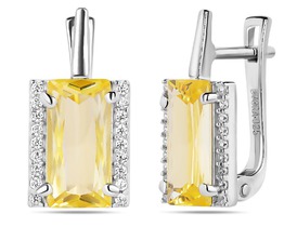 Серьги с фианитом родированные серебро 925*