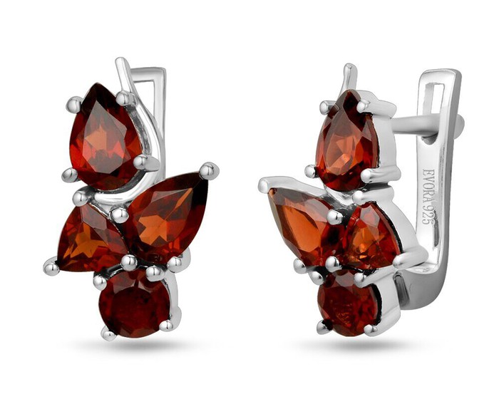Серьги из серебра гранат, Рапан