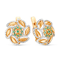 Серьги из золочёного серебра с изумрудом и родированием 925 пробы С-3944зрс1133