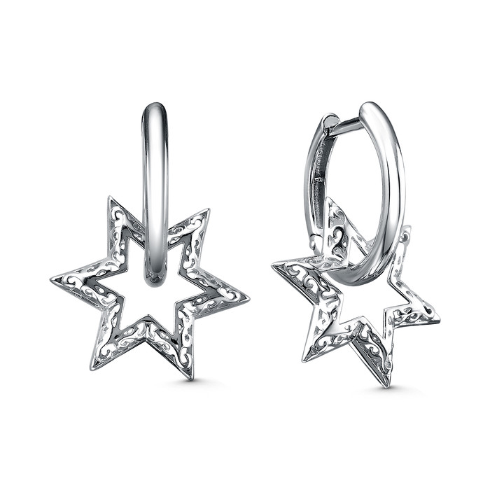 Совместные покупки Пермь Ювелирные украшения и бижутерия Серьги — Серьги из серебра родированные - Звёзды (трансформеры, 2 в 1) 925 пробы С-4804-Р