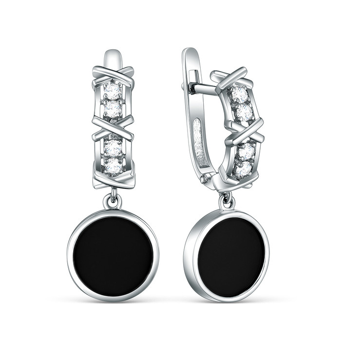 Совместные покупки Пермь Ювелирные украшения и бижутерия Серьги — Серьги из серебра с агатом и фианитами родированные 925 пробы С-4321-Р-ча