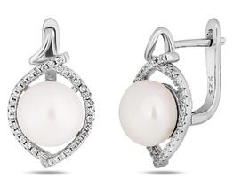 Серьги из серебра с культивированным жемчугом родированные 925 пробы 14500PWRH