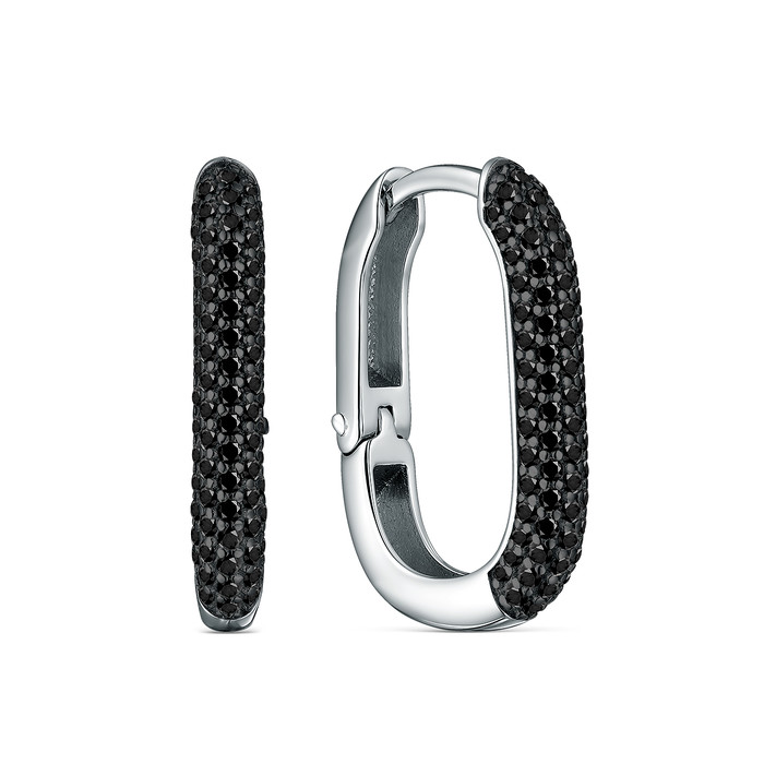 Серьги из серебра с чёрной шпинелью родированные 925 пробы 2-011р416
