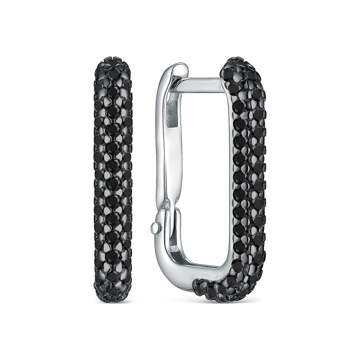 Серьги из серебра с чёрной шпинелью родированные с-7537рч416
