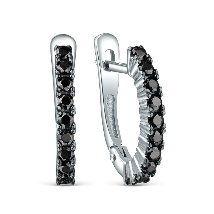 Совместные покупки Пермь Ювелирные украшения и бижутерия Серьги — Серьги из серебра с чёрными фианитами родированные 925 пробы с-7237р216