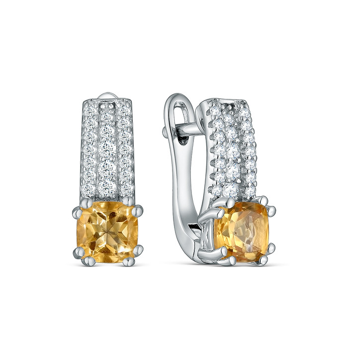 Совместные покупки Пермь Ювелирные украшения и бижутерия Серьги — Серьги из серебра с цитрином и кубическим цирконием родированные 925 пробы GTE-1