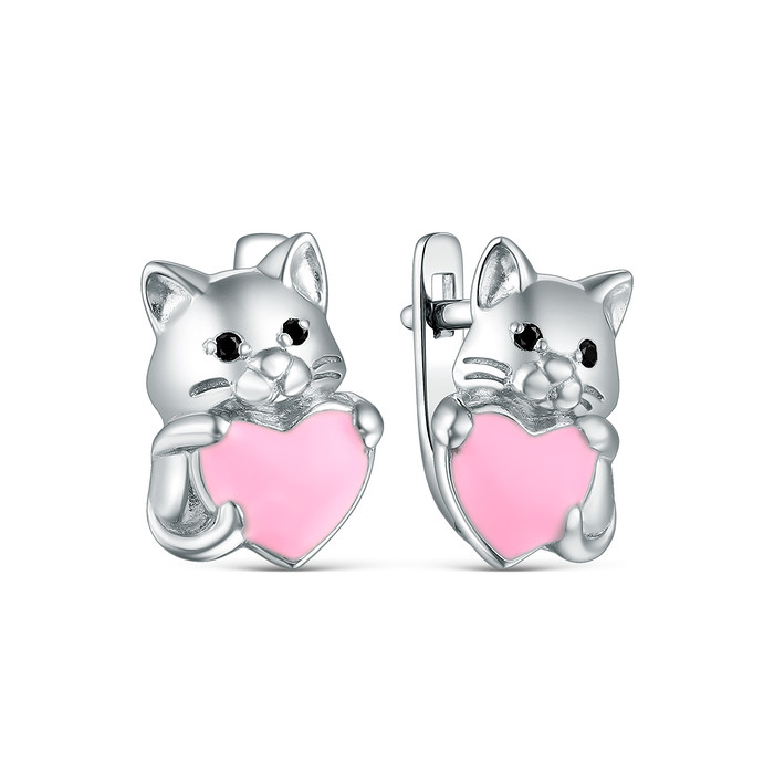 Серьги из серебра с эмалью и фианитами родированные 2313063