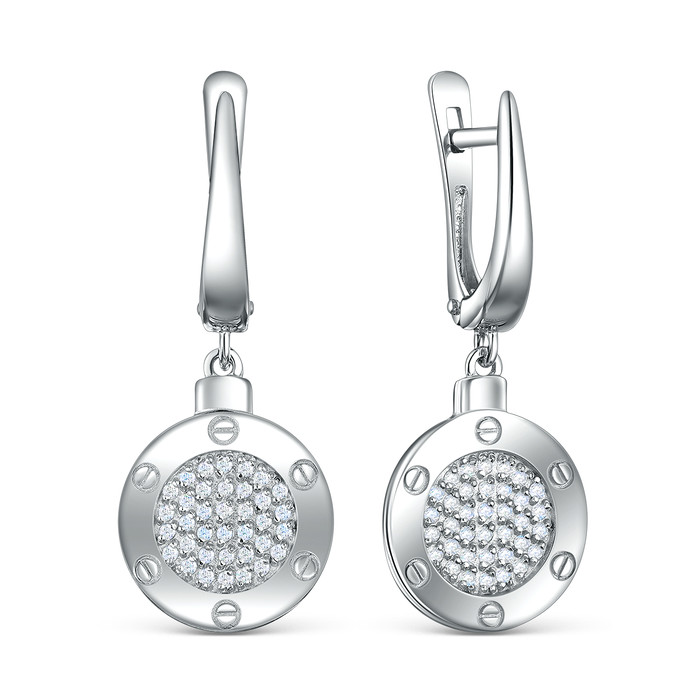 Серьги из серебра с фианитами родированные 925 пробы 04-302-0249-01
