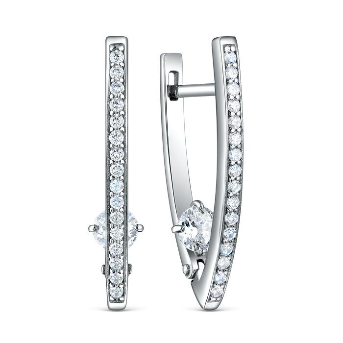 Серьги из серебра с фианитами родированные 925 пробы 2131142