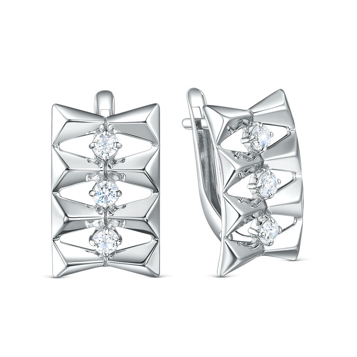 Серьги из серебра с фианитами родированные 925 пробы 3101028498