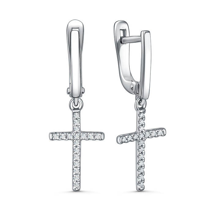 Совместные покупки Пермь Ювелирные украшения и бижутерия Серьги — Серьги из серебра с фианитами родированные - Кресты 925 пробы С-4782-Р
