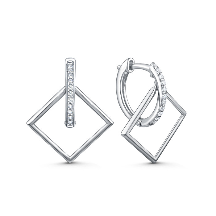 Совместные покупки Пермь Ювелирные украшения и бижутерия Серьги — Серьги из серебра с фианитами родированные - Ромбы 925 пробы 11-1339р