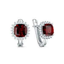 Серьги из серебра с гранатом и кубическим цирконием родированные 925 пробы GTE-3