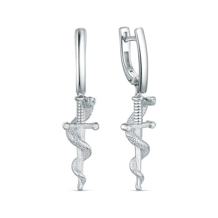 Совместные покупки Пермь Ювелирные украшения и бижутерия Серьги — Серьги из серебра с фианитами родированные - Змеи 925 пробы 421-10-790р