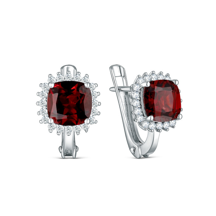 Совместные покупки Пермь Ювелирные украшения и бижутерия Серьги — Серьги из серебра с гранатом и кубическим цирконием родированные 925 пробы GTE-3