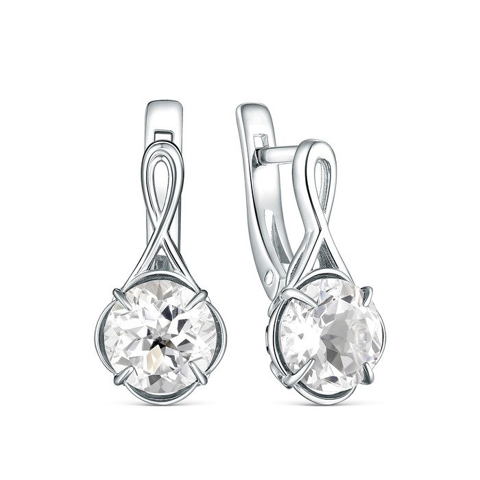 Серьги из серебра с натуральным горным хрусталём родированные 925 пробы 2-484р42