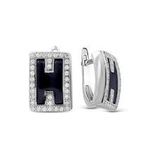 Серьги из серебра с перламутром и фианитами родированные 925 пробы 221-10-001р