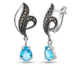 Серьги, марказит , синт.топаз, SL-AGA1550