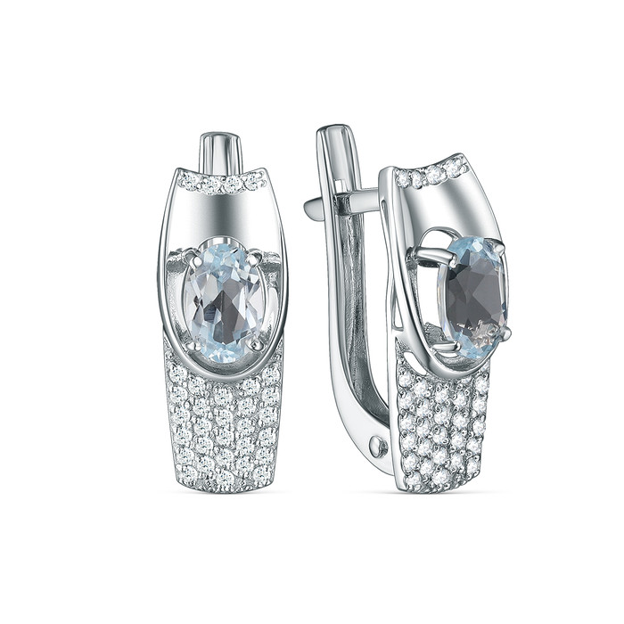 Серьги из серебра с топазом и фианитами родированные 2-3953-001