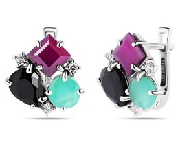 Серьги, изумруд берилл , рубин корунд , сапфир корунд, Изящество