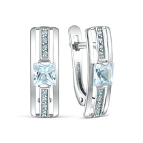 Серьги из серебра с sky топазом и фианитами родированные 925 пробы 04-202-0433-0