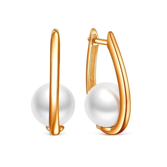 Совместные покупки Пермь Ювелирные украшения и бижутерия Серьги — Серьги из золочёного серебра с белым имитированным жемчугом 925 пробы 2-145з1001