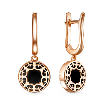 Серьги из золочёного серебра с чёрным агатом 925 пробы 05-202-0412-25