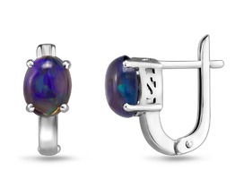 Серьги из золочёного серебра с натуральным чёрным опалом и фианитами С-3834зк117