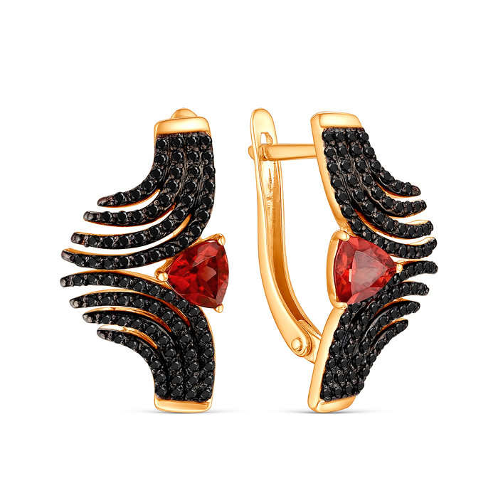 Серьги из золочёного серебра с натуральным гранатом, натуральной шпинелью и роди