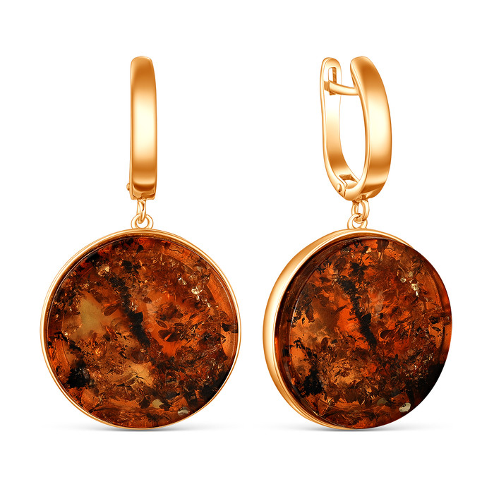 Серьги из золочёного серебра с янтарём 05-802-0120-12