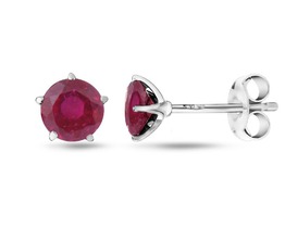 Серьги, 2 рубин корунд круг 6 мм 2.38ct, Гвоздики3