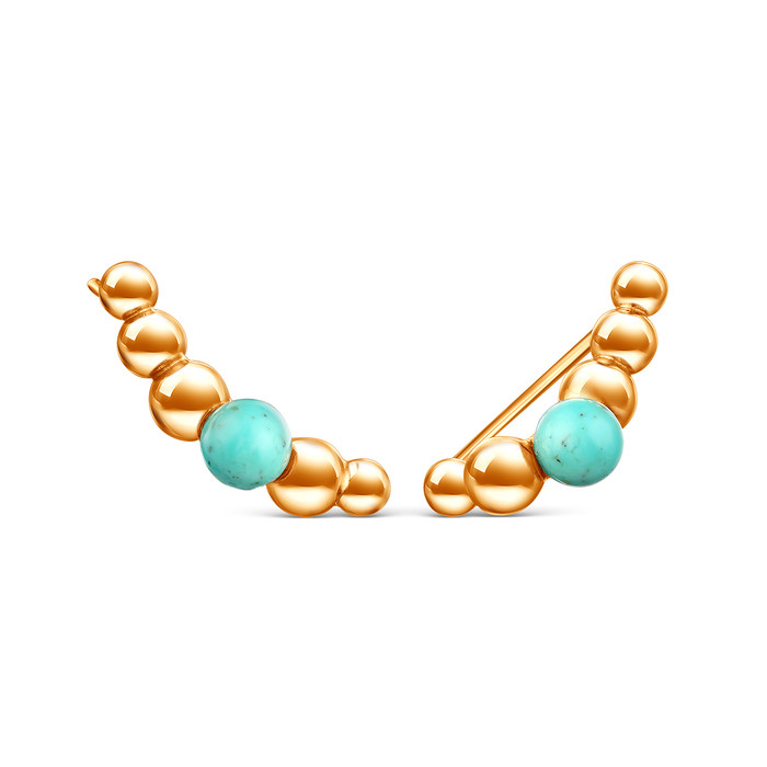 Совместные покупки Пермь Ювелирные украшения и бижутерия Серьги — Серьги каффы из золочёного серебра с натуральной бирюзой 925 пробы С-5002зш438н