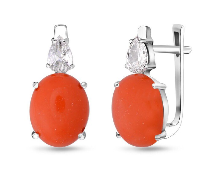 Серьги, арт.656589 Серебро Серебро 925, 2,65 гр., коралл