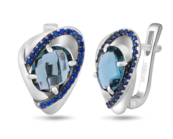 Серьги, арт.656210 Серебро Серебро 925, 4,25 гр., лондон топаз кварц , наносапфир