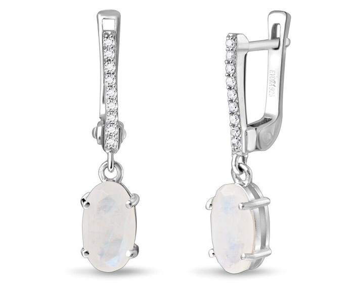 Серьги, арт.655245 Серебро Серебро 925, 3,59 гр., лунный камень
