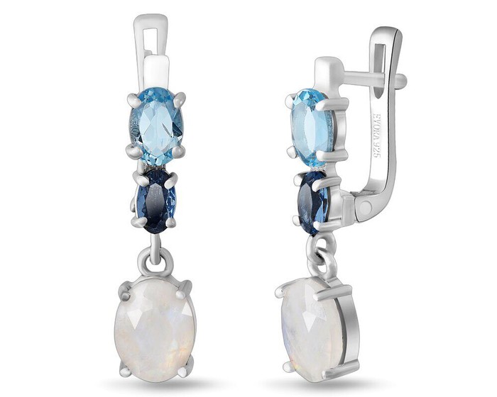 Серьги, арт.656863 Серебро Серебро 925, 3,68 гр., лунный камень , танзанит выращ. , топаз