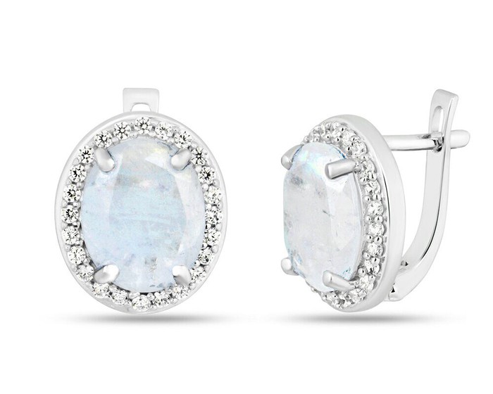 Серьги, арт.656133 Серебро Серебро 925, 4,41 гр., лунный камень
