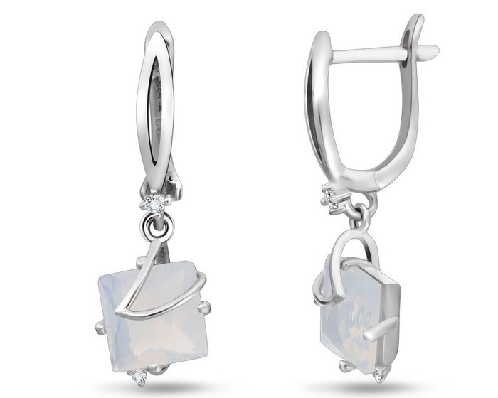 Серьги, арт.655443 Серебро Серебро 925, 3,88 гр., лунный камень выращ.