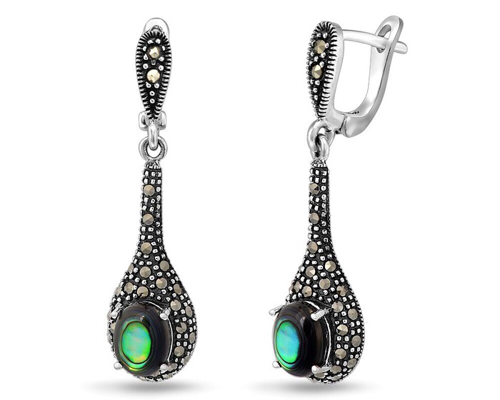 Серьги, арт.656436 Серебро Серебро 925, 7,16 гр., марказит , перламутр