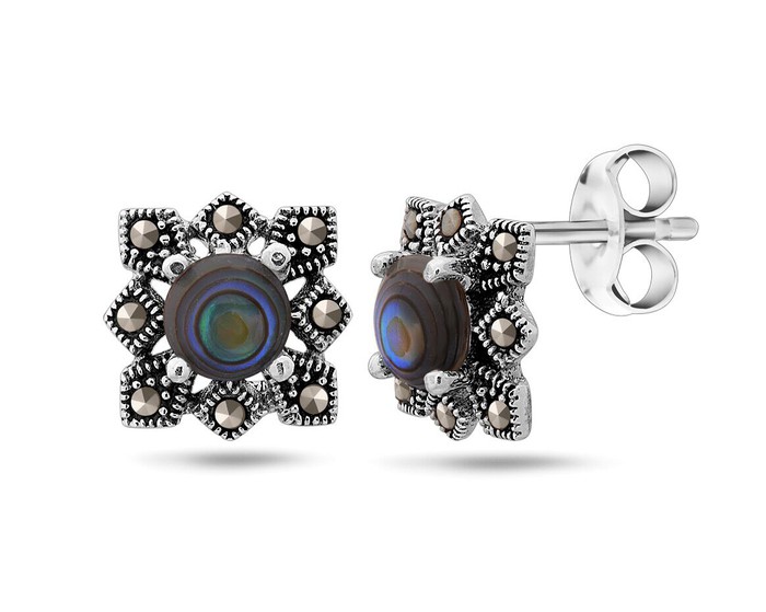 Серьги, арт.656507 Серебро Серебро 925, 1,9 гр., марказит , перламутр зелёный