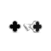 Серьги-пусеты Клевер Четырехлистник из серебра с чёрным агатом родированные 925