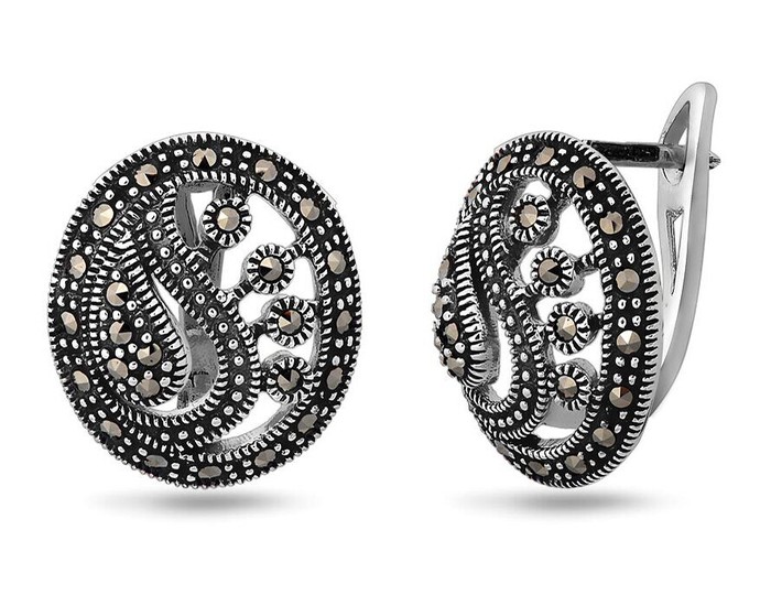 Серьги, арт.656480 Серебро Серебро 925, 7,64 гр., марказит