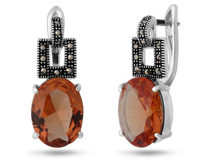 Серьги, арт.656497 Серебро Серебро 925, 12,02 гр., марказит , султанит ситалл