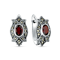 Серьги из чернёного серебра с натуральным гранатом и марказитами 925 пробы HE030