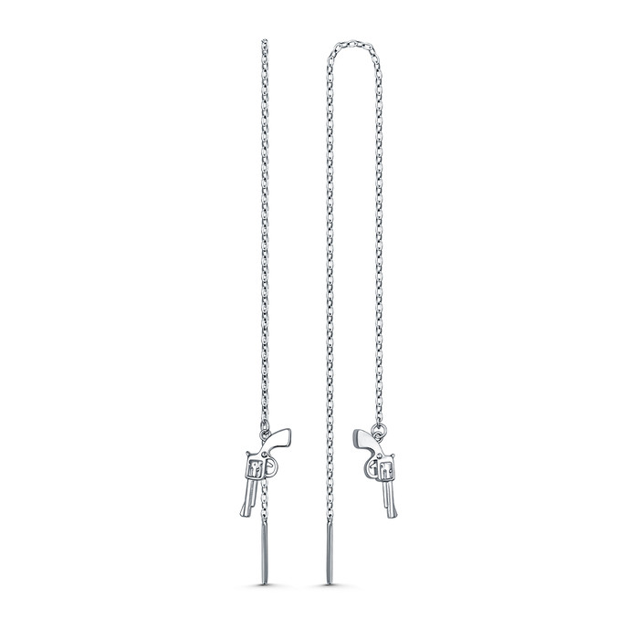 Серьги-продёвки из серебра родированные - Пистолеты (длина всей цепи 17,5 см) 92