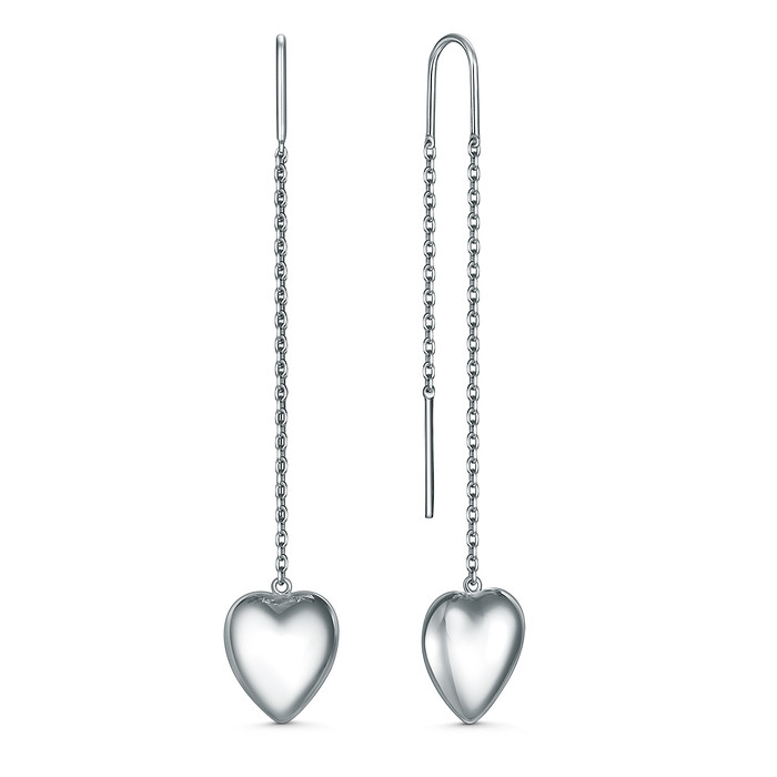 Серьги-продёвки из серебра родированные - Сердца 220-10-254р