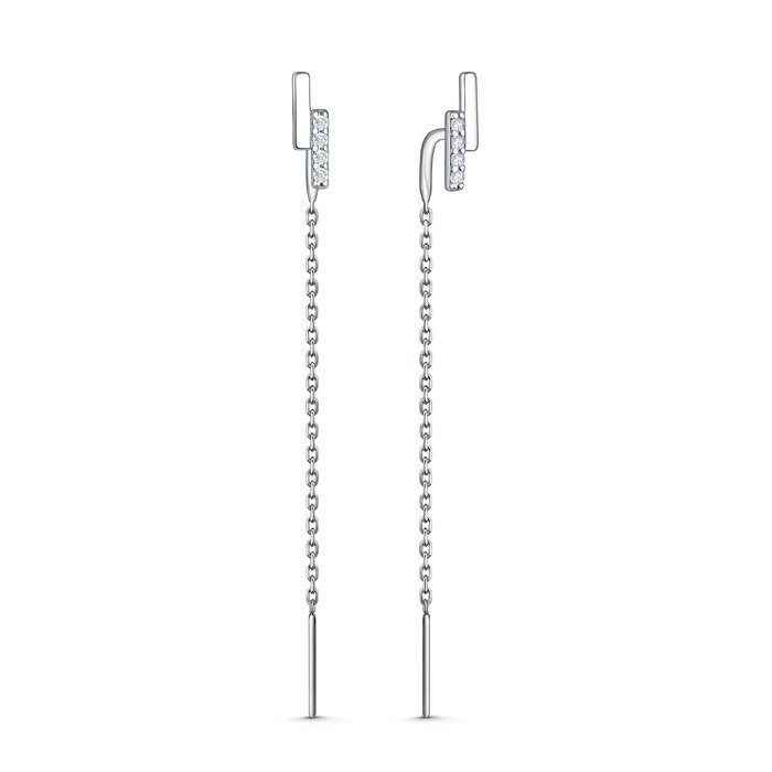 Серьги-продёвки из серебра с фианитами родированные 925 пробы 12-2116