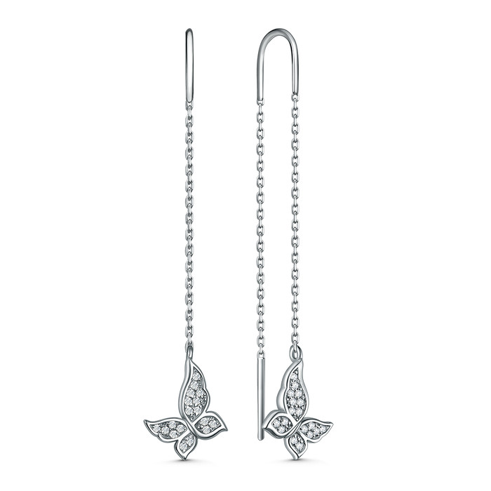 Серьги-продёвки из серебра с фианитами родированные - Бабочки С-4962-Р
