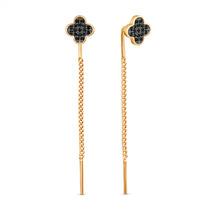 Серьги-продёвки клевер четверолистник из золочёного серебра со шпинелью 925 проб
